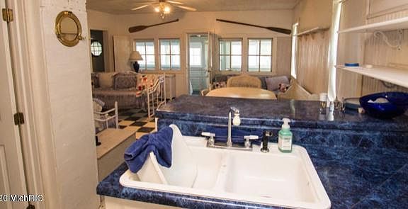 Over 70 Lakefront feet on Dewey Lake that has been recently surveyed. Expansive lake views. The main home is 2 bedrooms, 1 bathroom, open flow designed and has a great porch. Newer vinyl siding on this home. Newer well that is hooked to both cottages. The small/guest cottage needs to be complete renovated but has a lot of potential and lake views as well. Nice flat parcel with lots of parking. The lakefront is across the road but it privately owned by this property. Dewey Lake is in Sister Lakes and is a full recreational 223 acre all sports lake.