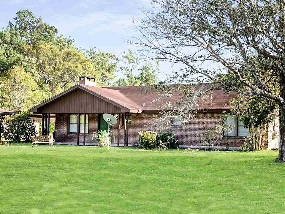 SO much potential in this classic starter home in Silsbee! Situated on 4.5 acres just north of town, this 1500SF brick home features an open floor plan with two bedrooms and two full bathrooms. There is plenty of privacy on this property surrounded by mature trees, including satsuma and navel orange trees. In the backyard you will find a large pond stocked with bass, a greenhouse, and storage shed. The house is also equipped with an inground pool and big barn that need a little bit of TLC. Did not flood. Call for all of the details!