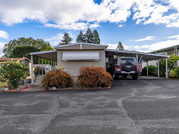 Discover peaceful, low-maintenance living in this 2-bedroom, 2-bathroom home offering 1,000 square feet of comfort in Riviera Mobile Estates—a 55+ cooperative park nestled along the beautiful Rogue River. This inviting home features fresh interior paint and updated flooring throughout. Two powered sheds provide plenty of space for storage or hobbies, and a carport ensures easy, covered parking. Need room for an extra vehicle? Additional storage is available for a minimal fee. With low space rent and a friendly, quiet community, this riverside retreat is perfect for those looking to enjoy a serene lifestyle in a resident-owned park.