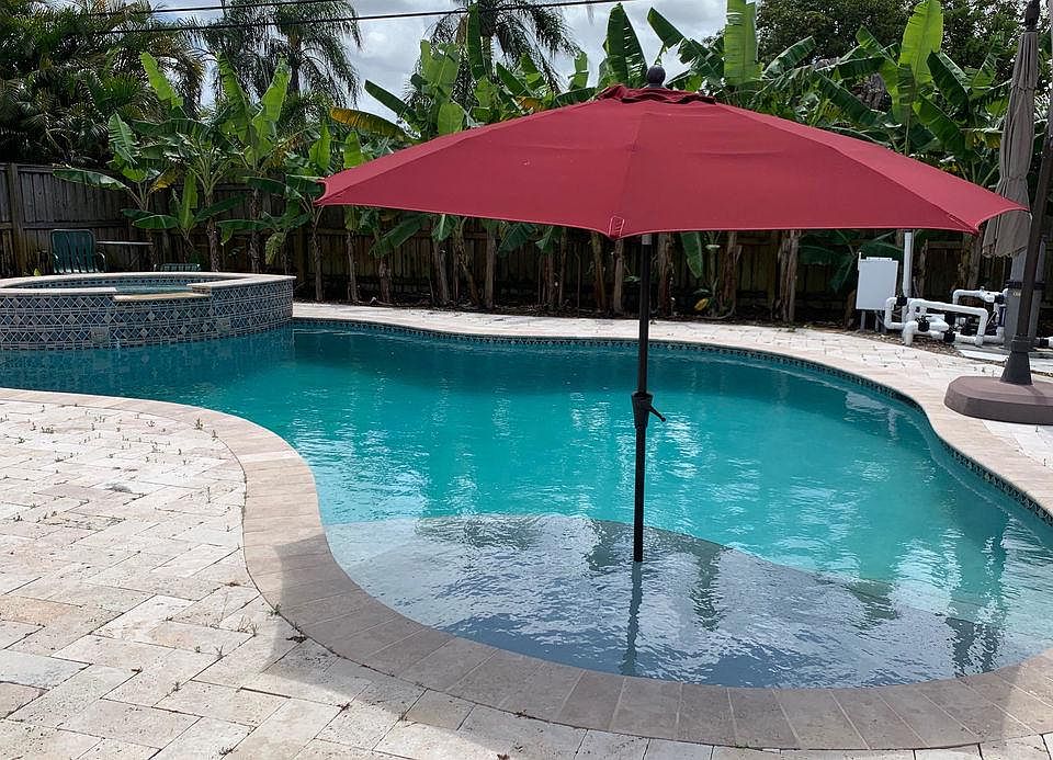 Nice house on huge double lot in the heart of Delray Beach. No HOA. Saltwater pool & spa. Huge double lot with 2 sheds, room for rv, boats, trucks, etc. Large kitchen with granite, island, stainless appliances. New A/C 2019. Solar panels for water heater owned not leased. Tile throughout. Laundry room. 2 Driveways. Nice family neighborhood. RV hookup for electric, water , and septic.