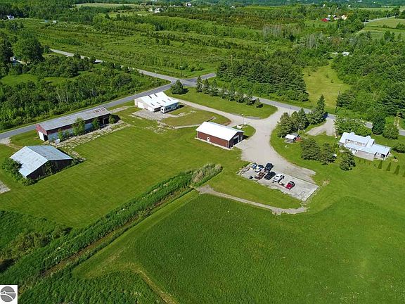 Twelve plus acres to roam on this well maintained farm home with several outbuildings including a 40 x 60 heated pole barn with a 1/2 bathroom, air compressor and 10,000 lb. hoist. This property has the potential to be boat storage property. The farm house offers 5 bedrooms, a large dining area and a recently upgraded kitchen. Relax or entertain on the front deck and enjoy the beautiful countryside views all only 5 miles from Elk Rapids.
