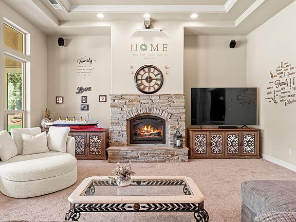 - Fireplace features: Living Room, Raised Hearth, Stone, Gas Log
