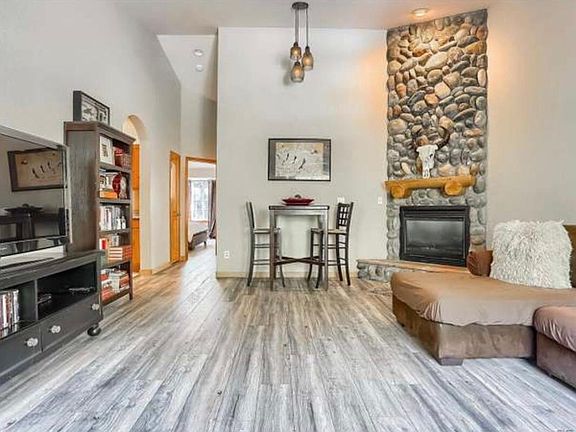 Adorable, peaceful furnished Bear Creek Lodges townhome within walking distance to the lake, downtown Evergreen, and the library. Fresh paint, gorgeous flooring, updated kitchenand washer/dryer. Featuring 9' ceilings and a beautiful river rock gas fireplace in the living room. Spacious family room. Two large bedrooms. Located on Bear Creek with views from both bedrooms. Two deeded parking spaces and dedicated separate storage space. Utilities average about $200 month (not included). Bear Creek runs through property. This townhome is in excellent condition with a very nice mountain feel. I have an approved lease. Applicant has until Monday, May 5, to sign the lease and pay deposit. I will move on to next approved applicant May 6, 2025. Zillow application required No smoking NO CATS Furnished Unit F (2 Parking Spots - F)