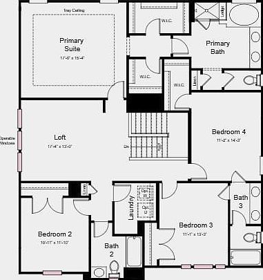 Central loftWalk-in pantryPrivate commodeJack and jill bathGourmet kitchenWindows at casual diningSeparate shower