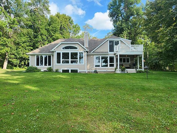 Welcome to this stunning lakefront year-round home, perfectly positioned to capture breathtaking sunsets over the water. This 4-bedroom, 3-bathroom home blends comfort, style, and functionality across three beautifully designed levels. Large windows frame picturesque views of the lake, bringing the beauty of nature into virtually every room in the home. As you enter the main level, you're greeted by a warm and inviting living room centered around a cozy fireplace, ideal for relaxing evenings or hosting guests. The kitchen features elegant granite countertops, ample cabinetry, and modern appliances—perfect for both everyday cooking and entertaining. The lower level boasts a sauna as well as a spacious family room with bar area, offering the ultimate space for entertaining or casual gatherings. Upstairs, a bonus room with a second fireplace and a private balcony provides a versatile space—ideal as a media room, home office, or relaxing getaway. From here, and from most rooms in the home, you can enjoy breathtaking lake views. With four generous bedrooms and three bathrooms, there’s plenty of space for family and guests alike. The combination of thoughtful design, west-facing exposure, and seamless indoor-outdoor flow make this home your ticket to lakeside living at its finest.