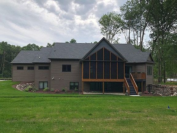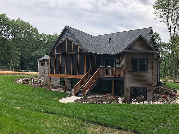 AUGUST CLOSE DATE! Custom craftsman style ranch home built by Legacy Homes, and was part of the Builders Showcase Spring 2018. Master on the first floor, with 3 additional bedrooms on lower walk-out level. Sq footages: 2450 on first floor, 2180 completed on lower level, garage/workshop 1415. Built on a 3/4 acre lot in beautiful Brownstone Estates, where all homes are custom. Monitored security system and Sonos sound system throughout. Arriving at your new home, you will park in an oversized 3 car garage, with extra space between single garage doors and extended depth as well. There is a connected heated shop for projects and a walk through door to side yard with a cement pad & cover for storing trash cans. You enter the house into your mudroom with custom lockers. Mudroom area also includes a closet, half bath and large laundry room with long granite counter and cabinets for extra storage. A one of a kind rounded kitchen includes JennAir appliances (fridge, dishwasher, 36" stove with 4 burners and SS griddle and beverage fridge), a circle island and two curved islands/bars, all with granite tops. HUGE walk in, working pantry includes a wall oven, microwave and granite counter for small appliances on one side and pantry shelving on the other and can be hidden from view with a custom made barn door. Main living space is 100% open and includes the kitchen, family room, entry and dining area. We brought in the outside stone in the form of two columns in the foyer/FR area. There are French doors which open to the office as well. Wood floors throughout the main living space and a gas fireplace with built in's completes the space. A slider from FR gives entry to the screened in porch which is perfect for enjoying the outdoors but staying out of the sun and away from the bugs. We grill all winter long on the porch as well. The master bedroom has double doors and it's own entry hall off the main living area. When you walk in, the bath is to your left with a HUGE walk in shower, double vanities and granite tops. Includes a separate throne room. The master sleeping area includes two walk-in closets and not only a large window out to the back, but a slider to exit onto the deck and steps down to yard or the door into the screened porch. Ceilings on the main level are at least 10' with many areas higher, including cathedral ceilings in main FR. The 4' wide steps to the lower level are adorned with glass stair railing instead of traditional spindles and an eye-catching wine room is visible from the main floor as well, with its floor to ceiling glass doors and custom cabinets, wine storage and fridge. Stairwell opens to the main living area of the lower level. That area includes a kitchen/bar area with sink, ice maker, 2 beverage fridges, microwave and has a curved bar for seating of 8-10. All granite tops. The slider to walk outside and an entire wall of daylight windows are the backdrop to the large open family room. There is a small hall to a full bathroom off the FR. The bathroom has 2 doors, so direct access to a bedroom as well. This bathroom includes a larger vanity with granite top, a throne room and a large tiled walk in shower. A second, longer hallway takes off from the FR and leads to the mechanical room, storage room, closet and 2 bedrooms with a Jack and Jill bath. Each bedroom has a large daylight window and closet with hanging and shelf space. The Jack and Jill bath has a granite top double vanity, pocket doors to each of the bedrooms and a separate shower/tub and toilet room with a locking door for privacy. Ceiling height on LL is 9' Approx bedroom sizes (some odd shapes): Master sleeping area: 16'2" x 13'11" LL bedroom 1: 15'2" x 10'6" LL bedroom 2, main bed area: 12'6" x 11'4" LL bedroom 3, main bed area: 11'10" x 10'8"