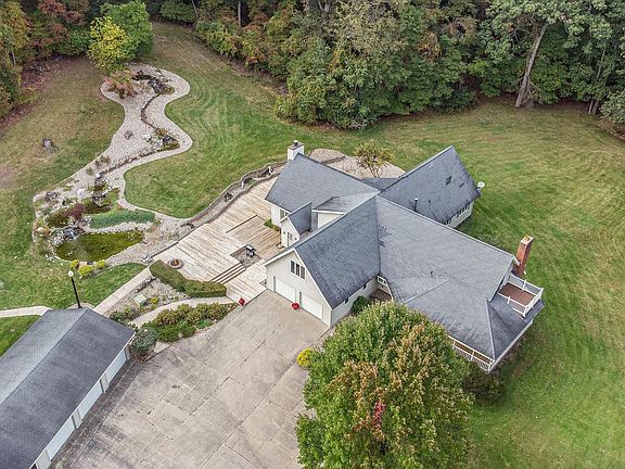 PUBLISHED MINIMUM BID AUCTION, ONLINE BIDDING NOW OPEN! The property that checks all the boxes awaits you on Lilac Road in South Bend. Built in 1974 this two-story home with partial basement features over 8400 square feet of finished space including 4 bedrooms and 3.5 baths. The home has a main level master bedroom with a large full bath with a whirlpool tub and large walk-in closet. The greatest feature of the main floor is the family living spaces. The beautiful kitchen features real hardwood cabinets, an island, quality appliances, and a large walk-in pantry for all of your storage needs. A formal dining area is off the kitchen with building cabinets too. Walk through the kitchen into the great room with vaulted ceilings, large windows looking out on your beautiful outdoor waterfall, and the floor to ceiling brick fireplace. Walk up the stairs to your second floor office and landing to overlook this beautiful room. At the front of the home is another large family room with a brick fireplace too. Also on the main floor is a large laundry room.On the second floor there are 3 large bedrooms with one bedroom having its own private balcony and two full bathrooms on the floor. Overlooking the great room on the second floor is a large office with built-in oak bookshelves and a desk with filing cabinets. Attached to the home is a 2 car attached garage. Now walk outside the front door of your home on the wrap-around porch, where you will be able to overlook the beautiful property. Or you can walk out your back door and enjoy your 2000+ square foot wood deck with a fire pit. Then while on your back deck, you can enjoy the large rock waterfall that comes down the back hill of your property. This backyard will truly take your breath away as you enjoy the beautiful nature and all it has to offer. Once you walk from the deck, you now can move into the most unique part of the property, the finished storage building and detached garage. In 1988 a 3.5 car garage was added to the property for additional vehicle storage, but in 2001 the current owner added a 90' x 50' finished storage building with a finished loft. This building features a main level 3/4 bathroom, a custom built antique gas station facade, and large open area with vaulted ceilings. The barn is dry-walled, concrete floor, and includes a small wash bay. Then you step up to the second floor loft with a 1500+ square foot finished loft area with full kitchen, full bath and 1 bed.