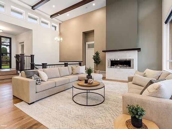 Bright luxurious livingBacking the golf courseOpen-concept main floorHigh ceilingsLarge windowsModern gas fireplaceSerene views