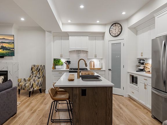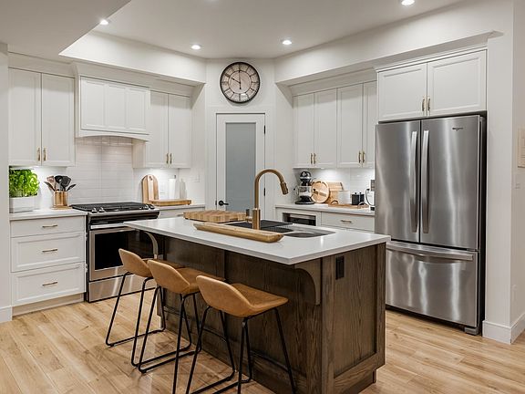 Welcome to Residence 76 at Ledgestone Place, situated at the end of the cul-de-sac, boasting quiet and tranquil views of the forest, farmland, golf course and mountains. This beautiful 3-level home features 4 bedrooms, 3 bathrooms and a VACANT 1 bedroom suite on the lower level. Upstairs you will find 3 large bedrooms and a fully custom primary with moody millwork, a huge walk-in-closet and spacious ensuite. The gourmet kitchen is complete with stainless steel appliances, marble-veined quartz countertops and a sizable pantry. Outdoor living is accentuated by a private landscaped back patio (that is begging for a hot tub) and a massive deck on the front of the home to enjoy the gorgeous greenbelt sunsets. This idyllic family home is worth a look!