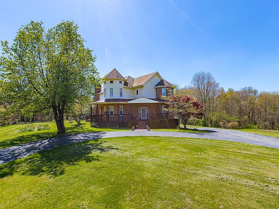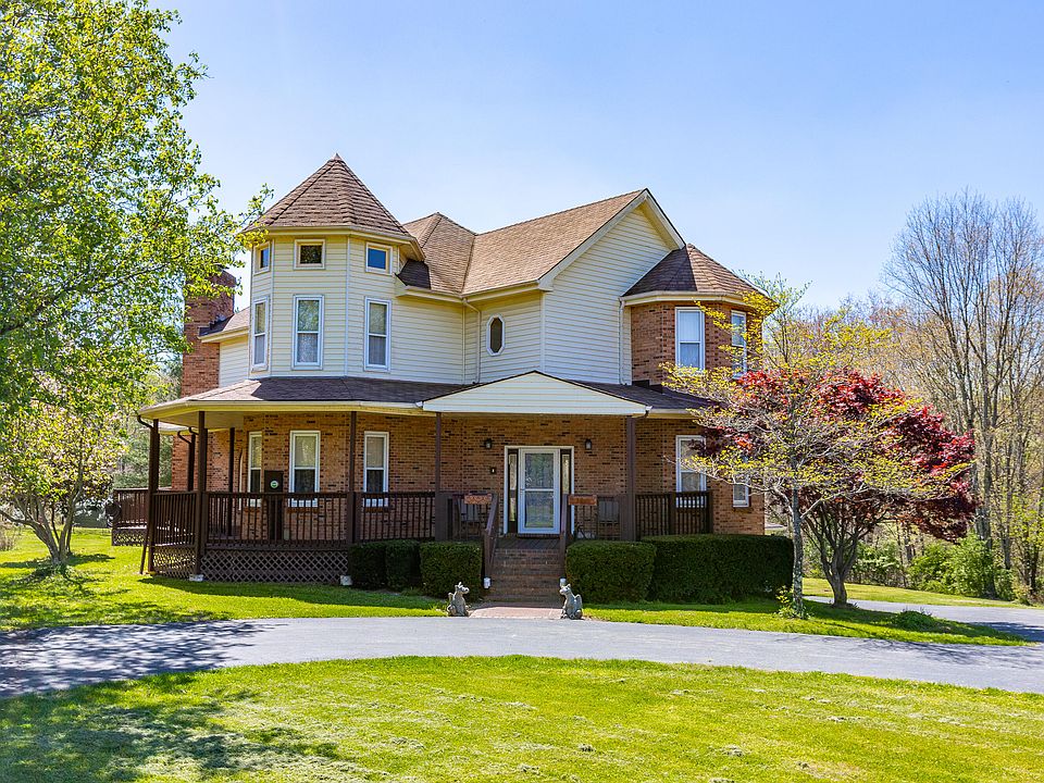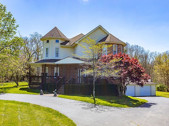 Very well-maintained Victorian style home settled in a rural area on 11+ acres 50% wooded. Lots of wildlife, turkey and deer This two-story home is set off by mature trees, a circular drive and a balcony. 5 bedrooms and 4,5 baths. Lots of space to grow! 3 fireplaces, 2.5 car attached garage. Open staircase, work-at-home office, extra space multi purpose room. Living room, dining room and all the extra space you need for your family. Hardwood flooring, ceramic tile flooring throughout, stylish custom touches. 2nd-floor laundry, and a second laundry area located in the basement, zoned geothermal heating/cooling for low expense on utilities, ceiling fans. enough room for RV parking, 95% finished open basement with lots of storage, and another bedroom that could be a in-law suite. Covered front porch, balcony porch off the primary bedroom. One mile off the exit. This home will move quickly at this price for the amount of home and land. Call to schedule your showing today.
