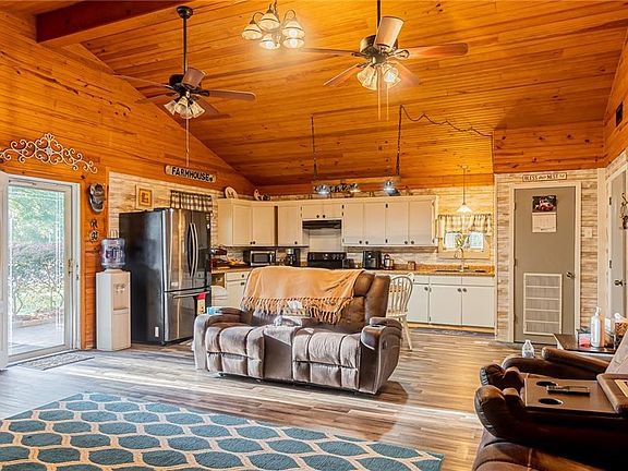Looking for a property that has ample land, a beautiful house, and a 2 year old outdoor kitchen? Say less. Come out to view this 2 bed 1 bath home with a metal frame, metal roof, new floors, with a wood interior that makes it feel like a cozy cabin. When entering the home, you are greeted with high ceilings and a spacious living room and kitchen. The entire property has been well-kept by the sellers and ready to be called HOME. Next, you have a 2-year old metal outdoor kitchen with a storage area, shop, and extra parking space. The outdoor kitchen is kitted with its very own appliances all staying and a half bath. With the cold weather coming, enjoy your mornings or nights by the exterior fireplace attached to the outdoor kitchen. Finally with 2.75 acres, look out to your vast backyard space where an extra garden shed that resides in the back and surround yourself with the 12+ mature pecan trees all for you.