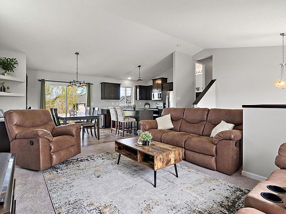 Enjoy open concept living at its finest with soaring, vaulted ceilings, bonus architectural windows with sunlight galore, stone counters, kitchen center island with breakfast bar seating, and spacious bedrooms with a large primary ensuite & added California closet system. Lower level features daylight windows, spacious family room, gliding door walk-out, and a HUGE attached garage. Original owners recently added wall-to-wall fresh paint throughout, high-end kitchen appliances, and brand new feature lighting. Assurance to move in with builder's 10-year warranty still in place, 2018 compliant mechanical systems, washer/dryer, and HVAC. Location provides both the peace & quiet of the countryside with close proximity to lake life, the annual Wright County Fair, parks, trails & preserves all within nearby convenience to downtown's shops & restaurants.