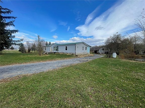 If you are looking for a Private Setting surrounded by land than take a look at this 1995 Double-wide on close to 2 acres. This home is in need of cosmetic rehab inside and out but sits nicely on a full basement with plenty of room. Large Living room/Dining room combination with pellet stove which can heat the whole house followed by "eat-in" kitchen, laundry room along with back enclosed porch leading to a full size basement. Generous sized Owner's Suite bedroom with WI Closet, full bath with separate shower and tub along with large vanity. 2 additional bedrooms on opposite side of home and full bath PLUS a "Bonus" room that can serve as an office, playroom or 4th Bedroom. Back Deck provides plenty of room for outside furniture with nice landscaped views of the land and pond on site as well. Large Barn with water is a great space for storage and plenty of parking is available.