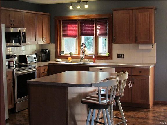 Start out the New Year in this Beautifully kept 3 bedroom updated ranch . Master suite with custom closet and newly done full bath. Newly updated kitchen with new appliances and center island loads of storage and hardwood floors. Large cozy family room with a wood burning stove, there are 2 more bedrooms with new flooring and a second full bath. Full walkout basemen, New Metal roof, 2 car attached garage. Enjoy outdoor entertaining with 2 tier deck, and above ground pool, new paved driveway all on just under 1 acre. Located within 3 miles to Thruway. Taxes shown without exemptions.