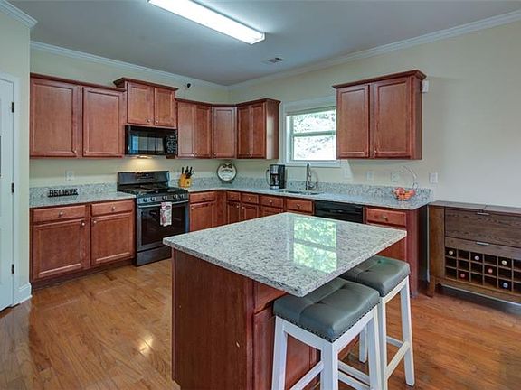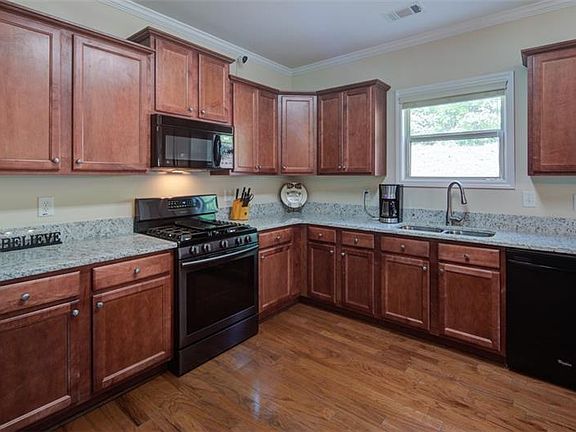 Spectacular home in a fantastic location. Freshly painted exterior. Kitchen features new granite counters, cherry cabinets, ample counter space, breakfast bar, and open flow to the family room. Gleaming hardwood floors in foyer, hall, & kitchen. Large floor plan means generously sized bedrooms. Additional storage built in attic. Back yard has a shed and new sod. Plenty of room to play in the front yard and culdesac. Security system with cameras stay. Sidewalks scheduled to go in on Whitehead all the way to the downtown Sugar Hill development. You will love this house!