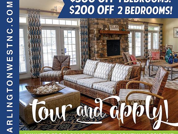 Arlington West is a gorgeous, resort-style apartment community perfectly situated on Western Boulevard, only 7 short miles from Camp Lejeune. Our central location place you in close proximity to a wide- variety of shopping, restaurants, entertainment, Jacksonville Commons Community Center and several Onslow County parks and beaches. All of our homes feature granite counter tops, upgraded lighting packages, arched entryways, open floor plans, and lofty 9-foot ceilings with crown molding making Arlington West the perfect place to wind down from a busy day. As a resident you will enjoy a wide-range of amenities including a sparkling salt water swimming pool with built in surround sound speakers, large pool deck with indoor-outdoor fireplace, business center, gourmet coffee bar, billiard table, tanning bed, a 24-hour fitness center with children's play area, two dog parks, and outdoor grills for your enjoyment. What a great way to meet your neighbors and make new friends. Did I mention we accommodate various lease options? Three to five month lease terms are an additional $100 per month and six to eleven month leases are an additional $75 per month. We offer short term leases for an additional $100 per month for a 3-5 month lease or $75 for a 6-11 month lease.