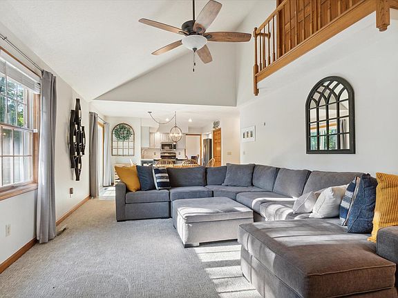 Spacious home with loads of room to spread out inside and out. Main level living space with soaring ceilings and balcony have an open feel. You will love the updated kitchen with solid surface counter tops, coffee station and large pantry. some new flooring on main level and upstairs. Primary bedroom boasts cathedral ceilings for a roomy feel. Basment recently renovated for additional living space. Enjoy your evenings relaxing on your deck overlooking your private 1 acre lot with fenced in back yard. Roof, gutters, well tank, water heater new in the past 4 years.