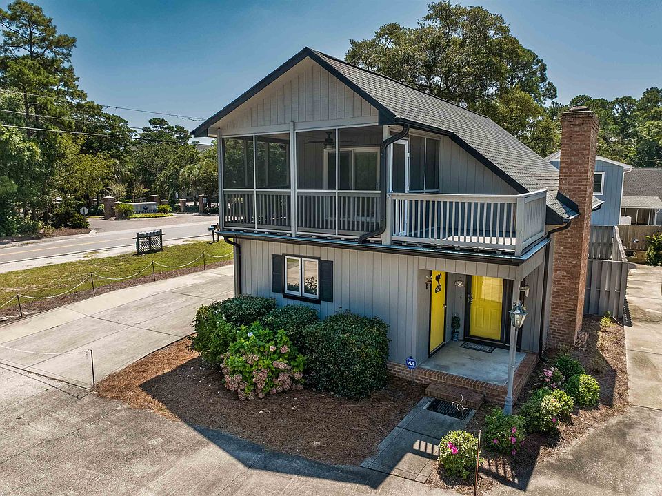 BACK ON THE MARKET!! DON'T MISS OUT!! Discover this charming two-story patio home in North Myrtle Beach, ideally located within walking distance to the beach and Main Street, with a golf cart ride providing easy access to everything the area has to offer. This inviting residence features three bedrooms and two bathrooms, with the main bedroom conveniently situated on the first floor. Enjoy cozy evenings by the wood-burning fireplace and relax in the newly added Carolina Room off the main bedroom, complete with HVAC, raised flooring, and modern shades. The home boasts luxury vinyl plank flooring throughout, including the stairs, and has seen numerous updates, including a new HVAC system and roof installed in 2019. The front of the house now features an added screened porch and balcony off the upstairs bedroom. Additional enhancements include mostly new light fixtures, new sliding glass doors, and updated windows with protective film for sun, noise, and storm resistance. The driveway has been widened to accommodate four vehicles, and the exterior has been freshly painted. For added convenience, there is a new 14’x10’ shed with electricity, and the yard is fully fenced for privacy. The home comes fully furnished, ready for you to move in and start enjoying beachside living. Square footage is approximate, buyer to verify.