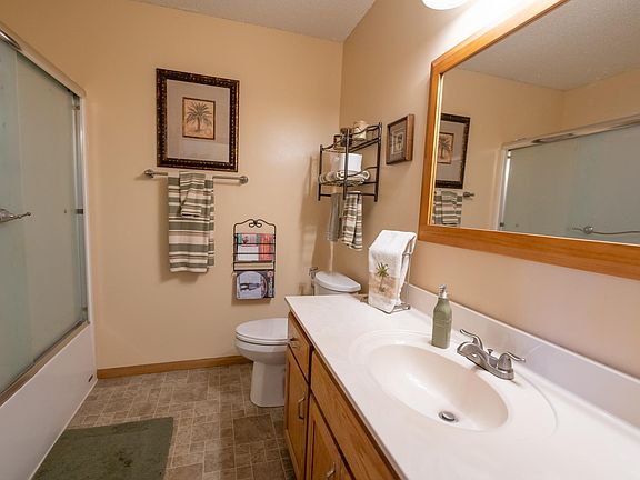 Discover the charm of this beautifully maintained 1998 split-entry home in the heart of Farmington, where community and comfort blend seamlessly. Boasting over 1600 square feet of finished space, this home features a large, open floor plan perfect for modern living. Greeted by the warmth of hardwood floors, you'll find three inviting bedrooms and two well-appointed bathrooms. The heart of the home is an eat-in kitchen that flows into a family room, highlighted by a cozy gas burning fireplace, ideal for those chilly evenings. The third bedroom on the lower level offers versatility - transform it into a second family room, a home office, or a private guest suite. Vaulted ceilings add an airy feel to the living spaces, while natural light floods through the windows. Outside, enjoy the privacy of a large, flat backyard, perfect for summer barbecues or a tranquil morning coffee. The low-maintenance vinyl exterior and concrete driveway ensure more time for enjoying your home rather than maintaining it. This home also includes a two-car attached garage, adding conveneince to your daily life. Located just minutes from downtown Farmington, you're never far from the action. The area is known for its quiet neighborhoods, several local parks, and play areas, making it family-friendly and community-focused. Experience the delight of Farmington's community events like Dew Days and the Dakota County Fair, where you can truly feel part of the town's vibrant life. Don't miss the opportunity to make this house your home - where every day feels like a getaway in your own backyard. Come see what makes this property a perfect match for your lifestyle.