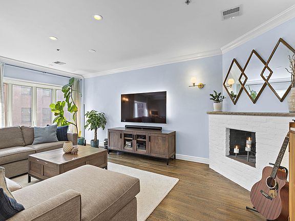 Come see this beautiful 2 bedroom, 2 bathroom condo on downtown 1st St in Hoboken. Home features 1,355 sq ft of spacious living space with beautiful hardwood floors, large bay windows, sunken living room, a huge dining area, fireplace, tons of closet space. Beautiful kitchen with stainless steel appliances, granite countertops, garbage disposal, and spacious island that is perfect for entertaining and informal dining. Both bathrooms are beautifully updated. Brand new washer and dryer and HVAC system. Building is conveniently located just a short walk to Hoboken PATH and NJ Lightrail, enjoy a large common yard and one indoor garage parking!