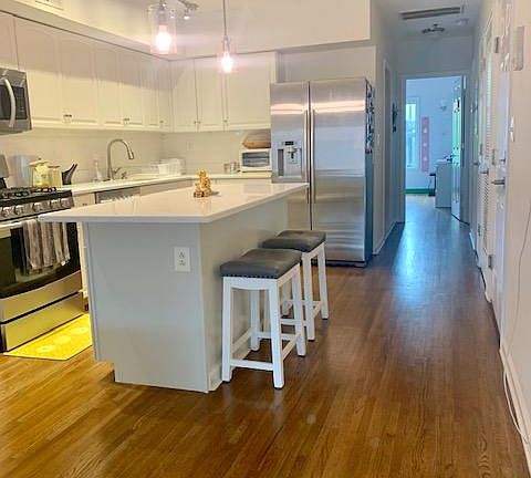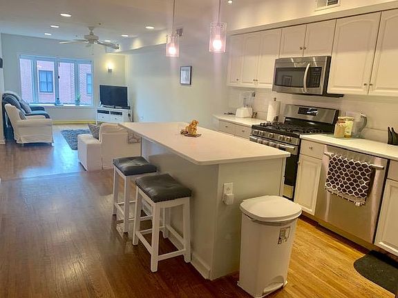 Recently renovated, spacious 2bathroom/2bedroom plus den (perfect for an office space) Condo. Ideal for a small family. Open flow kitchen with quarts and stainless steel finishes. Central Air and Heat, laundry in Unit, hardwood floors throughout. Parking included. Ideal for a young family with public school starting at pre-k. Minutes to Path, Light-Rail, Ferry, Bus to NYC, Parks, Restaurant and Shops. One year minimum lease term, the tenant to pay for Elecricity, Gas and Cable. Parking included