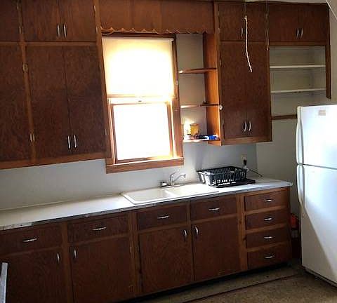 508 1st St., Prairie View, Ks. 2 bedroom and 1 bathroom house for sale! This house has a large enclosed front and back porches which adds great additional space to this bungalow. There is a living room with a bay window which provides great light. There is a large open kitchen which includes appliances. New vinyl siding and most windows, along with a new roof. This house is at a bargain price and would allow someone room to remodel and update this to the perfect first home or a rental.Priced @ 19,000. Why rent when you can own for a lower price. Come take a look and see the potential to this house.