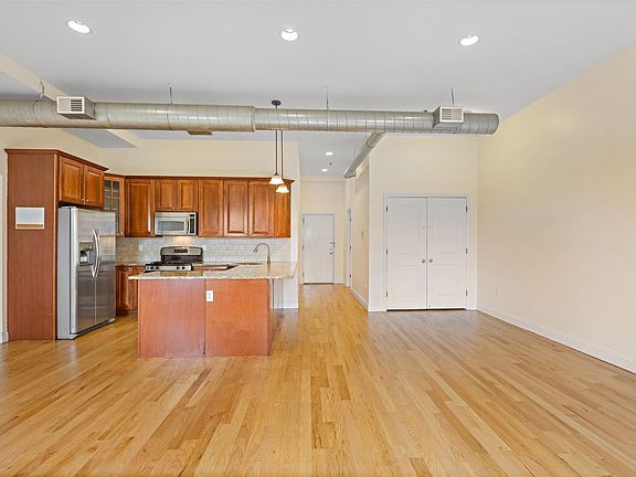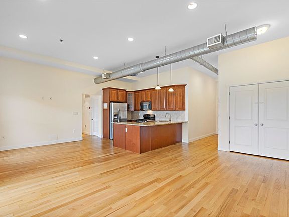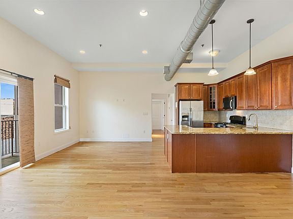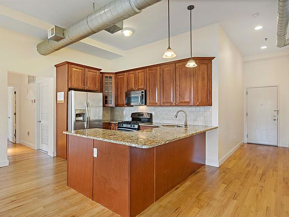 Extremely spacious loft-like two-bedroom condo in a boutique building located in a highly desirable section of Union City, adjacent to the spectacular Washington Park. As you enter this 1342 sq ft unit, you will notice the 13ft ceilings throughout its open floor plan. The expansive living/dining area feature 4" oak flooring, recessed lighting, exposed central air ductwork and a private balcony. The open kitchen features 42" cabinets, stainless steel appliances, granite countertops and a garbage disposal. Ample closets throughout, with a large walk-in closet in the primary bedroom. Completing this listing are TWO parking spaces one in the garage and one outside in back. Ideally situated just across the street from Washington Park and close to NYC buses, Hudson-Bergen Light Rail as well as local shops and restaurants.