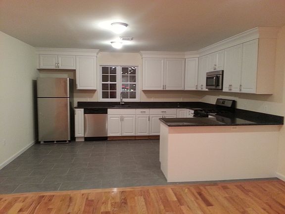 Beautiful new construction 2nd floor apartment offering 3 BRs, 2 full renovated baths PLUS office/family room w/sliders to balcony! Gleaming hardwood floors, stunning kitchen w/stainless appliances, granite counters and tile floor. Master bedroom suite includes a walk in closet, beautiful master bath with large tub and separate shower! Washer and dryer for tenant use! Stay cool on summer days with central air! One parking spot in driveway for tenants. Small pets will be considered. No smoking on premises. Close proximity to NYC train and bus - only 2 blocks away! Close to schools, shopping and more!