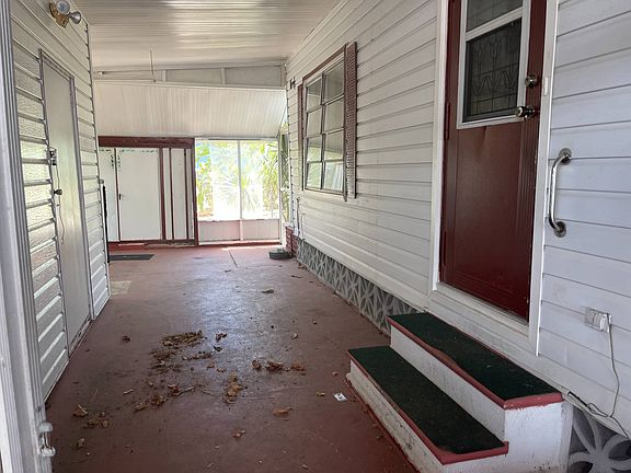 Size and location matters! Check out this 1972 home located on an oversized wedge in Village on the Greens, with expansive living room views of the golf course, The Greens of Manatee Golf Course. It's a large blank canvas with 1,368 square feet, an additional 240 square feet of enclosed lanai, over 700 square feet of roofed carport, shed and screened lanai plus a wood deck that overlooks your backyard and the golfers passing by. The exterior of the home has vinyl siding with mature landscaping along with plenty of open views. Inside, the home is ready for your individual style and updates. The old carpeting has been removed and shows a strong subfloor. The high ceilings make this home feel very open. There's plenty of storage in the kitchen with additional built-in cabinetry in the dining room. The enclosed lanai offers the opportunity to utilize that space for TV watching and the expansive living room for entertaining and watching the main attraction from the course. The guest bedroom is spacious including ample closet and dresser storage. The hall bathroom has a long countertop that could easily accommodate a double sink and updated cabinet. The primary bedroom and en suite bathroom sits across the full front of the house. There's a double door closet and an additional walk-in closet. This is a full bath including a tub-shower combination. The halls are plenty wide with standard size doors. Currently, there are handicap rails inside that are strategically placed. If you're looking for space in a larger mobile home, and, an entertaining, pleasant view, this home will get your creative juices flowing. Loads of possibilities! AC is not in working condition. Disclosure: Village on the Greens Park is being sold. Closing cannot take place until the Park sale is final. This will be a Land Lease lot and does not include real estate. Future Market Rent is unknown. Village on the Greens is gated, 55+, pet free community. The community offers swimming pool, shuffleboard, library, clubhouse and a host of social activities. Sub-renting is allowed following park guidelines; 3 month minimum and 6 month maximum. Background check and approval is required. AGENT MUST SHOW BY APPOINTMENT 508 44th Ave E Lot RC-27 (Ranchero Circle) Bradenton, FL 34203