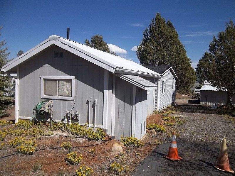 Manufactured home with foundation, fresh paint and new carpet. Master bath has linen closet and two more closets, tub, shower and two sink vanity. There is also a bunk house, one bed & bath plus utility room. House and bunk house wired for generator. Large 3-car garage, shop with wood stove, wood shed.