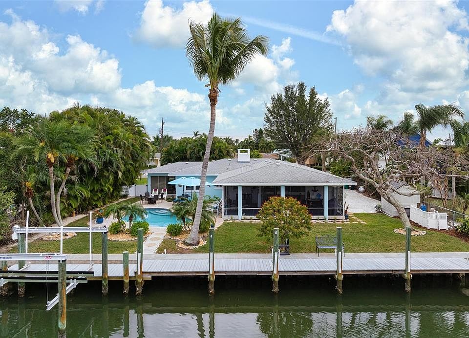 This meticulously maintained home boasts 3 bedrooms, complemented by 2 and a half bathrooms, each updated with new fixtures and finishes. Nestled on an expansive 11,970sqft lot, it features an impressive 90ft of canal frontage, offering direct access to Bimini Bay and the Gulf of Mexico, making it a boater's paradise. The property is further enhanced by an in-ground heated pool, outdoor shower for sandy beach days, and a large screened-in porch, perfect for enjoying the Florida climate year-round. Inside, the primary bedroom impresses with vaulted ceilings, ample closet space, and ensuite bathroom. Waterfront views can be savored from the family room, and the large dining room accommodates gatherings with ease. Anchored in the center of the home is an original, coquina fireplace adding a touch of uniqueness and warmth. Additional amenities include space for RV/boat parking and new impact windows installed in 2020, ensuring both convenience and peace of mind. This home is a true gem for those seeking waterfront living with all the comforts and conveniences. Schedule your private showing today!!