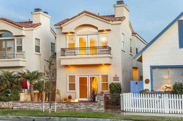 Gorgeous home located only a few blocks to the beach. This wonderful home has an open floorplan w/high ceilings & lots of windows throughout keeping the home light & bright. As you step into this beach oasis the home opens into the dining room and living room. Large living room has cozy fireplace w/French doors leading out to the sun drenched front patio. Oversized front patio has built in fire pit, lush landscaping & room for entertaining. Chef?s dream kitchen has lots of cabinets for storage and pantry. Kitchen also boasts warm granite slab countertops, stainless steel appliances and seating at the large counter. Family room has sliding door that opens to the back patio for full entertaining option from the front to the back for optimal living options. Master bedroom has vaulted ceilings & gas fireplace with master spa like bathroom attached and a walk in closet. Master bath has a separate tub & tile surround shower. Two other bedrooms w/Jack and Jill bath & laundry closet upstairs occupy the second floor. Further home amenities include detached 2 car garage, balcony off the master, vaulted ceilings, recessed lighting, new paint & carpet throughout. Home is located just a few short steps and easy walking distance to Main St, The Pier and The Beach.