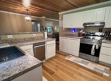 Original wood floorsStainless steel appliancesTiled tub surround