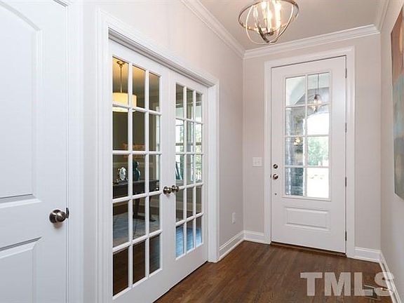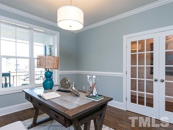 Move-in ready! Only side-load garage in all of Wendell Falls! This popular "Emerson" high-performance, energy-efficient home, features Ranch-style living with a Master Bedroom and 2 guest bedrooms on 1st floor; open floor plan w/ beautiful kitchen/eating and living area; generous walk-in pantry and flex space for office or formal dining. Basement has a 4th bedroom w/ full bath; fin. rec room. Backs to woods and community trails. Gorgeous back yard on cul-de-sac is completely fenced.