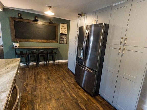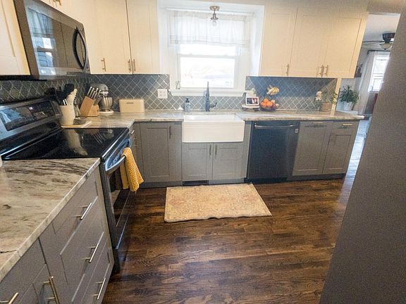 This is the home everyone is looking for! Completely updated! You'll love the kitchen w/new appliances, stone countertops, soft-close cabinets, large pantry w/slide-outs, tile backsplash, farmhouse sink, & custom eat-in (pipe design) bar w/4 stools plus formal DR. LR has wood-burning brick fireplace w/reclaimed wood mantel. Custom wood trim throughout. New oak flooring & carpet 1st floor. Vinyl plank floors & shiplap walls in LL. Baths are new & offer new tile flooring, vanities, toilets, lighting, tile shower, tub & surround. Finished basement w/office workspace, deck, fenced yard & storage shed. OTHER NEW: doors (interior & exterior), windows, garage door, gutters, sidewalk, landscaping, gravel parking pad, & garden with raised beds. Brand NEW Roof put on March 8th!