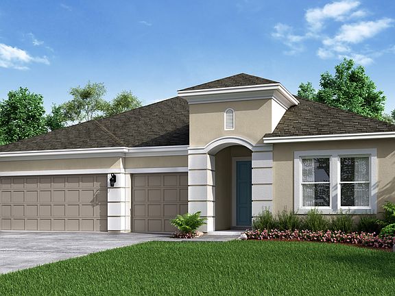 The Saint Croix has it all from the stunning curb appeal to designer interior. With 4 bedrooms and 4.5 baths, each bedroom has a private bathroom. All 2,921 square feet were thoughtfully designed. Enter the home through the inviting foyer which is connected to two of the secondary bedrooms. Through the foyer you will enter the open-concept kitchen with center island that overlooks the gathering room which leads to the large covered lanai. The spacious owner's suite includes a garden tub, large walk-in shower, dual vanities, water closet & a walk-in closet which can be connected to the laundry room if desired. Options on this home include converting the flex room into a study, expanding the space in the laundry, and adding an outdoor kitchen.