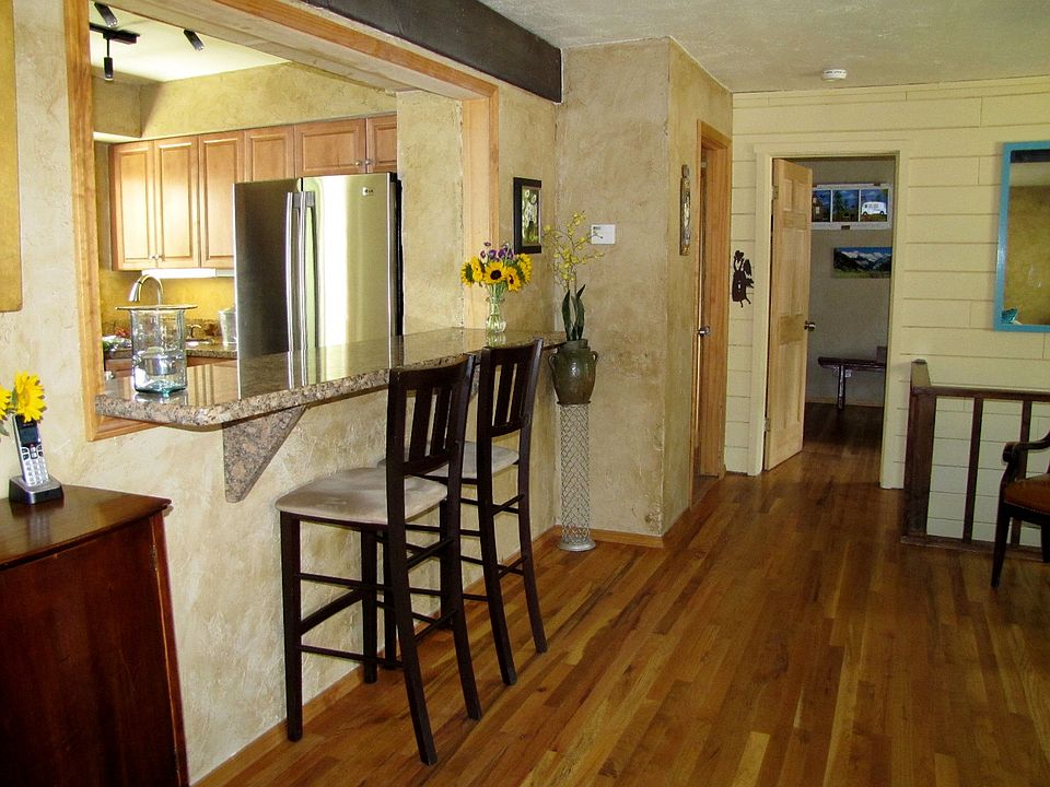 Single Family Home for sale by owner in Durango, CO 81301. READY TO MOVE into your new home? You will love this updated 1950's era home in Needham school district with beautifully kept Oak floors, modern kitchen with stainless steel appliances, granite countertops and tile floor, and a fabulous giant play room. Butte Circle is a horseshoe spur off of the 2600 block of Delwood Ave. This is a quiet, friendly neighborhood with little through traffic. In addition to the forced gas heat, a cast iron woodstove adds cozy comfort to the open floor plan on main level. Gathering space in bonus/family room in finished basement. Enjoy your morning coffee in the bistro corner on the covered back deck off your kitchen/dining room or grill out and entertain on the flagstone patio under the giant willow tree. This home is in an established neighborhood centrally located for walking or riding to schools and conveniences in-town. Very private backyard with lawn and border gardens. Pets, children, gardeners, friends and family