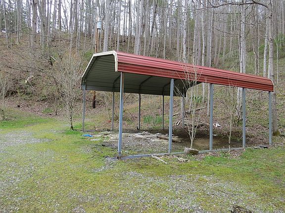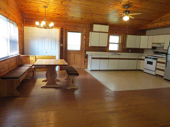 Looking for that home in the mountains? On 12.15 wooded acres. Sit on front porch and listen to birds singing. Main level has great room with stone wood burning Fireplace, DA w/HWfloors. Kitchen w/appliances and laminate floor. 2 BR w/carpet, 2 Baths w/linoleum on floors. All have Knotty Pine Paneling. Bath off of Main BR has Washer/Dryer. Lower Level needs to be completed. It has LR, Kitchen w/appliance & Bonanza Omish Stove, Hall, Bath, and BR, Utility Rm w/washer/dryer hookup, all with Knotty Pine Paneling. Baths and Utility Rm w/laminate floors. Drive in Garage. The downstairs floors are concrete. Laminate flooring is stored in closet in Garage waiting to be installed by new owner, to finish off this area. Needs some TLC. Being sold "AS IS".