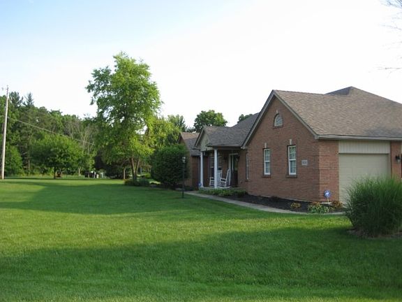 BEAUTIFUL inside and out!This CUSTOM brick ranch offers a low maintenance yard w/spacious patio surrounded by lush private gardens. An inviting foyer with an open floor plan has hardwood floors in the entry, formal dining room, kitchen and breakfast room. Family/Great Room features a fireplace and a wall of windows with a gorgeous view! Perfect for entertaining! Eat-in kitchen which is open to Family/Great Room and boasts plenty of counters, abundance of cabinets, and a center island. Master suite has a large walk-in closet, soaking tub with Jacuzzi jets and a walk-in shower. Two additional bedrooms and main bath will not disappoint! With great colors on the walls, trim and doors. This warm and welcoming home has lots of light throughout and is beautifully maintained. A finished basement, features a living room, an added bedroom with a walk-n-closet and a 1/2 bath. The oversize 3-car garage offers plenty of extras.