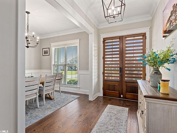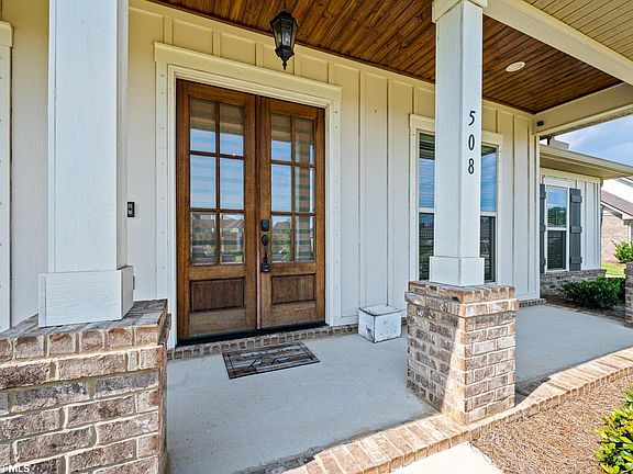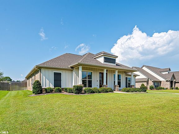 This amazing home was built by Truland Homes and features their Mesquite plan. This property will wow you from the charming front porch and doors to the custom features both inside and out! The large kitchen that opens to the living space features painted custom cabinetry, fantasy brown granite and subway tile backsplash. The chef of the house will love the fiver burner gas cook top along with the other stainless steel appliances. There is plenty of seating between the kitchen island, the breakfast area off the kitchen and the separate dining room, which features beautiful wainscoting. The mud area has a built in bench for the perfect drop spot right off the garage entrance & laundry area. Laundry room conveniently includes a wash sink. The large primary bedroom features hardwood floors and the connected bathroom boasts a huge walk in shower, soaking tub, dual vanities with white quartz countertops and walk in closet. Speaking of bathrooms, you will never run out of hot water with the tankless hot water heater! In the backyard you will find a screened in back patio, a separate fenced area for your pups as well as the entire yard being fenced. Front & back yard have a programmable zoned irrigation system, which is on a separate meter ("buddy meter"). This gold fortified home has it all and so does the neighborhood! Community amenities include gated outdoor pool, outdoor kitchen, tennis & basketball court, wiffle ball field and an amazing playground. The location also can't be beat, being just minutes from all downtown Fairhope has to offer, as well as just a short drive to the interstate or the gorgeous beaches of Baldwin County!