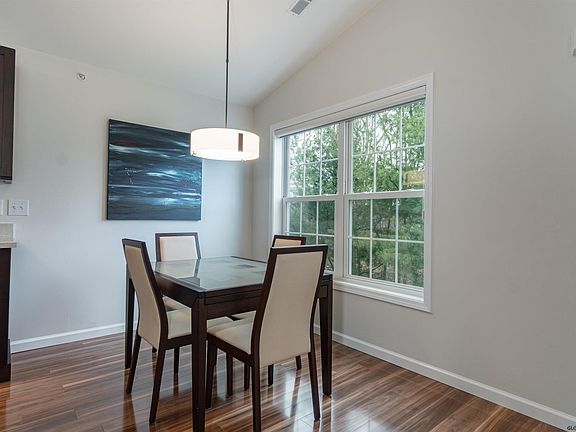 Updated, spotless and move-in ready condo in convenient location. Kitchen updated in 2010 with stylish rich cabinetry, featuring soft-close drawers and doors, counter top, sink, disposal and flooring. Custom Hubbardton Forge lighting in kitchen and dining room. Appliances: Range with convection oven 2019, Front Load Washer & Dryer 2018, Microwave 2015, Refrigerator 2010, Dishwasher 2010, Garage Door Opener 2009. Hunter Douglas room-darkening shades on all windows and patio door. Entire interior repainted. Living room has cathedral ceiling an sliding door to deck. Unpack and enjoy!