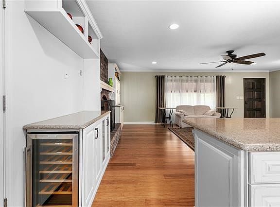 Gorgeous Manicured 6.19 acres with a 32 x 24 Shop. Beautifully maintained true ranch home with 5 true bedrooms. Kitchen and baths have all been updated. Hearth room kitchen and a oversized family room. Upgraded counter tops and built in's throughout home. 2 woodburning fireplace. First floor has solid bamboo flooring. New windows and vinyl siding in 2005. Oversized kitchen island and custom cabinets throughout the home. 2 spacious decks and a hot tub. Garden area, Pergola sitting area and firepit. Custom landscaping and trees on the property makes this your own private oasis. Finished lower level includes 2 bedrooms with walk in closets, rec room, craft room and laundry room. Plenty of storage space. Work shop has a 3rd car garage door and patio area. Don't miss out on this gorgeous property that's just 25 minutes from downtown. Paved streets to secluded home with wonderful views and manicured acreage you don't find just outside of Liberty. This shop is every man's dream with extra lighting and windows and patio area and a 3rd car garage. Out of state buyer cancelled at no fault of seller. 2022-09-04