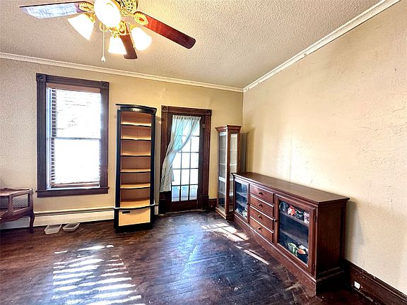 This home has so much potential with the original wood flooring, large windows, character features and nice sized rooms. Main level offers a living room with a formal dining area, kitchen with an exterior exit and laundry area, 2 bedrooms, one with a wood stove and a bathroom. The room with the stairway to the upper level has office space and an additional wood stove. Upper level has the potential of a primary bedroom/bathroom suite plus a 2nd bedroom. The perimeter fencing is a combination of chain link & wood. Parts of the yard are divided for pets, the large pine trees offer shade and the attached deck is great for entertaining. The 12x36 ~ 1 car garage has a workshop with a wood stove and work benches. Added bonus is the great location to schools and downtown.