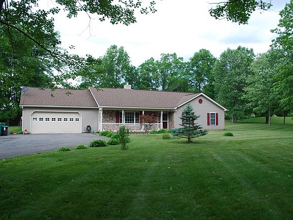 Pleasant Valley School District. This lovely ranch is on 2.21 acres of well manicured landscaping.It has 3 bedrooms and 2 full baths. The large living room has a fireplace which opens up to the dining room and the kitchen. The kitchen features granite counters and a open floor plan to the dining room. Off the dining room is a large 4 season room. This home also has a large 2 car garage. Inside the garage there is a stairs leading to a partially finished attic for all your storage. This corner lot home is also located on a Cul-de-sac. It is close to the center of town and shopping. Low taxes. This is a must see.