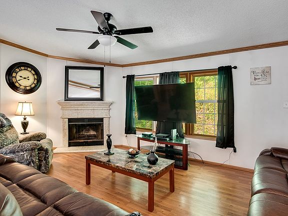 Privately situated in East Sylva, this 3 bedroom, 2.5 bath home offers 6+/- acres! The home offers a split bedroom floor plan, a large kitchen, dining and living room with a gas log fireplace. You'll love spending evenings roasting marshmallows by firepit. There's even a storage building to house your lawn tools. The current owner even has a roughed in hiking trail through the property.
