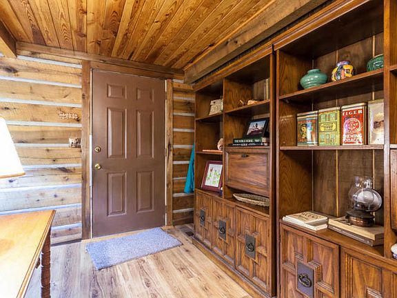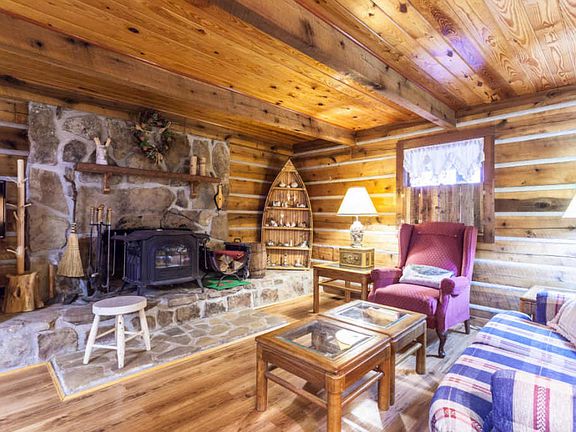If you are looking for seclusion, look no further than this beautiful single-story log cabin on 11.3 wooded acres! Relax on the deep set porch or in front of the wood burning stove in the living room. This home also features exposed beams, wood ceilings throughout and a central vacuum system. Crawlspace Dry Zone installed in 2014, retaining wall constructed Spring 2018. Included on the property are a 3 stall barn, two small fenced pastures, creek that runs the length of the property, potting shed with power and running water, and perennial herb & wildflower gardens bloom early spring to late fall. No restrictions and not in a subdivision. Ideal for a hobby farm, this property is a nature lover's dream!