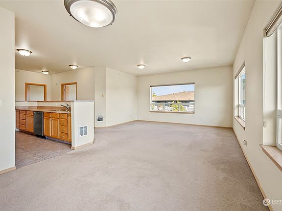 Bright and spacious top floor corner unit! Feel comfortable in this 1460sqft condo with 3 bd rms and 2 full bath rms. Nice open concept with 9ft ceilings and the perk of no one making noise above you. The primary bd rm has an ensuite bath with two separate vanities and a large walk-in closet. Enjoy the covered balcony with access from the living room or bedroom. Spacious utility closet with stacked washer/dryer. Lots of cabinets and counterspace. Beautiful club house with a fitness room/meeting area, kitchen, dining and outdoor space that can also be reserved for private get-togethers. Wonderful location close to I-5, shopping, restaurants, groceries, parks and trials. No weight restriction on pets and no rental cap! Great investment!