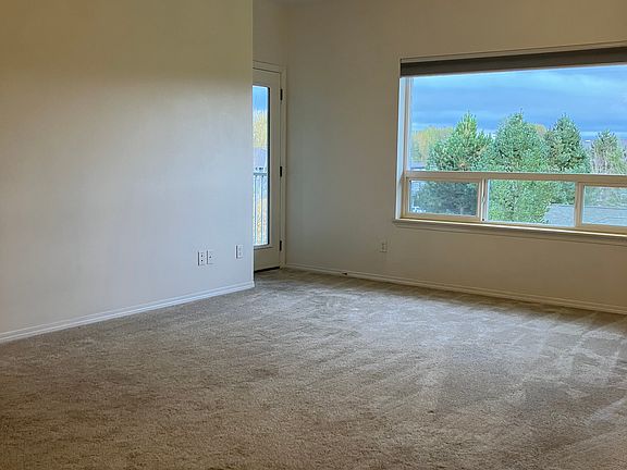 Sunny third floor (no elevator - 31 steps total) unit in Darby Estates. The Darby Estates Condominiums are Bellingham's largest garden-style condominiums. The mature landscaping and paths provide a quiet, peaceful environment which can be seen from this unit's oversized windows and private balcony. This unit also includes an additional bonus room that could be used as an office. Walk in closet is located off of the bedroom. One reserved parking spot is provided with ample parking for visitors. Beautiful clubhouse and exercise facility available. Water, sewer, and garbage included. Renter pays electric.