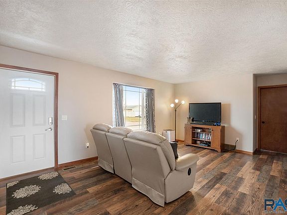 Small town living at its best! Just a short drive to Sioux Falls, this beautiful ranch style home has so much to offer. A spacious living room with a big window and beautiful easy to care for laminate floors throughout the entire home! The eat-in kitchen has maple cabinets and a slider to an awesome patio, fenced backyard and no backyard neighbors! 2 spacious bedrooms with double closets and a full bath. The lower level has just been finished with a beautiful family room, great for entertaining! Enjoy your privacy with a huge master suite w/a large closet and bath with a wonderful tile shower. The 4th bedroom, full bath and laundry room complete the basement. An attached 2 stall garage and a nice shed for extra storage. This home is priced to sell!