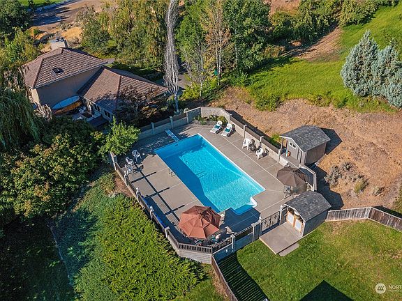 Two-story with stunning views and shop! Situated in coveted location near the foothills of Wenatchee, this home is one of only 5 residences on the cul-de-sac! Main level features; large entryway, 3 bedrooms, 2 full bath, laundry room & entertainment room. Second floor boasts; spacious primary suite, walk-in closet, balcony, vaulted ceilings, office, open kitchen, fire place, dining room, half bath, & deck. Recent updates include; interior and exterior paint, quality fixtures & carpet. The 32x28 shop includes a 677 sq. ft storage mezzanine, electricity & water. Enjoy a well maintained outdoor space with fenced back yard & in-ground pool! Close to trails, schools, shopping & medical facilities. Don't miss this rare find!